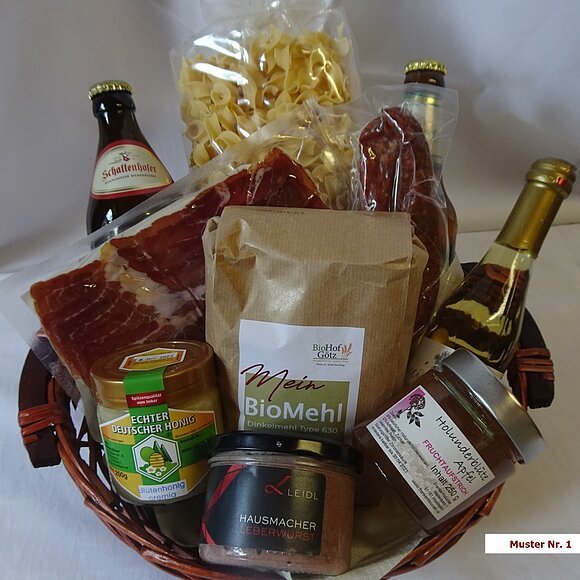 Weitere Körbe erhalten Sie mit Produkten aus der Altmühl-Jura-Region: Jeder Korb kann individuell nach Ihren Wünschen und Preisvorstellungen zusammengestellt werden.