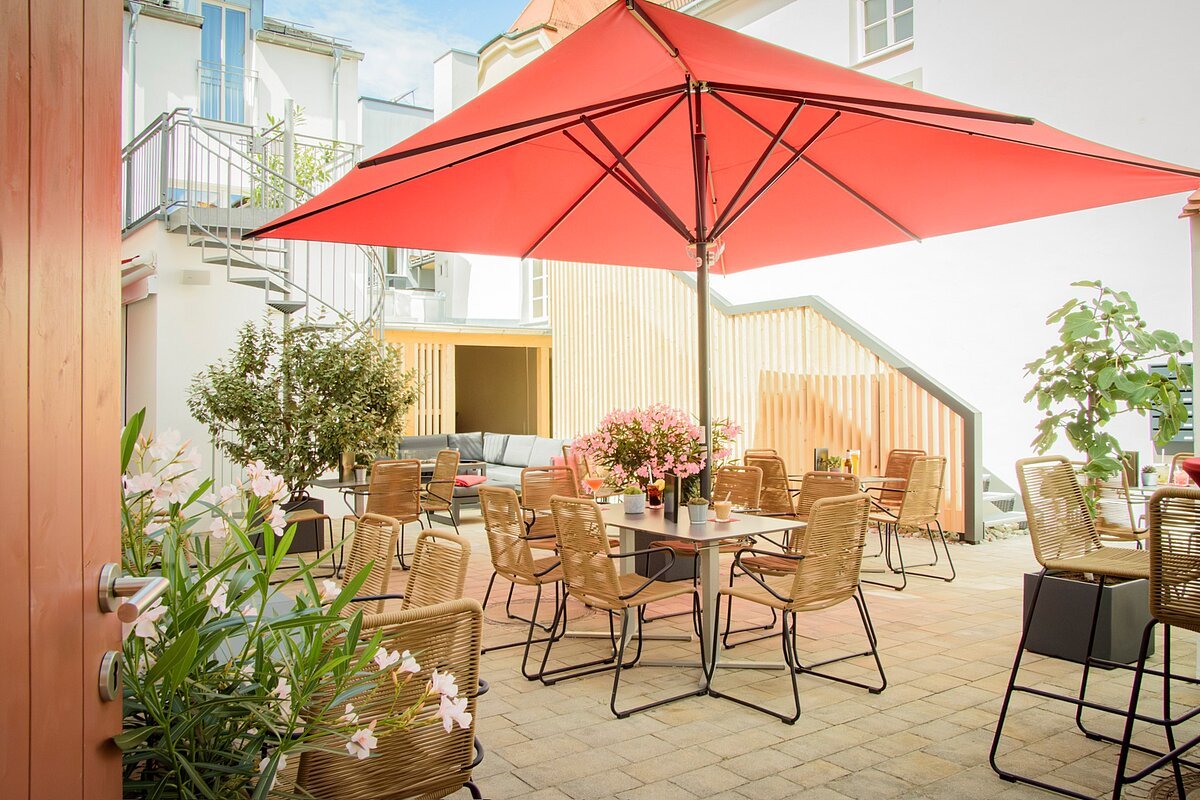 In unserem neu gestalteten Innenhof finden Sie einen mediterranen Rückzugsort mit besonderer Atmosphäre – ideal, um an Sommerabenden bei einem Glas Bier oder einem Cocktail die Seele baumeln zu lassen und sich mit Freunden zu treffen.