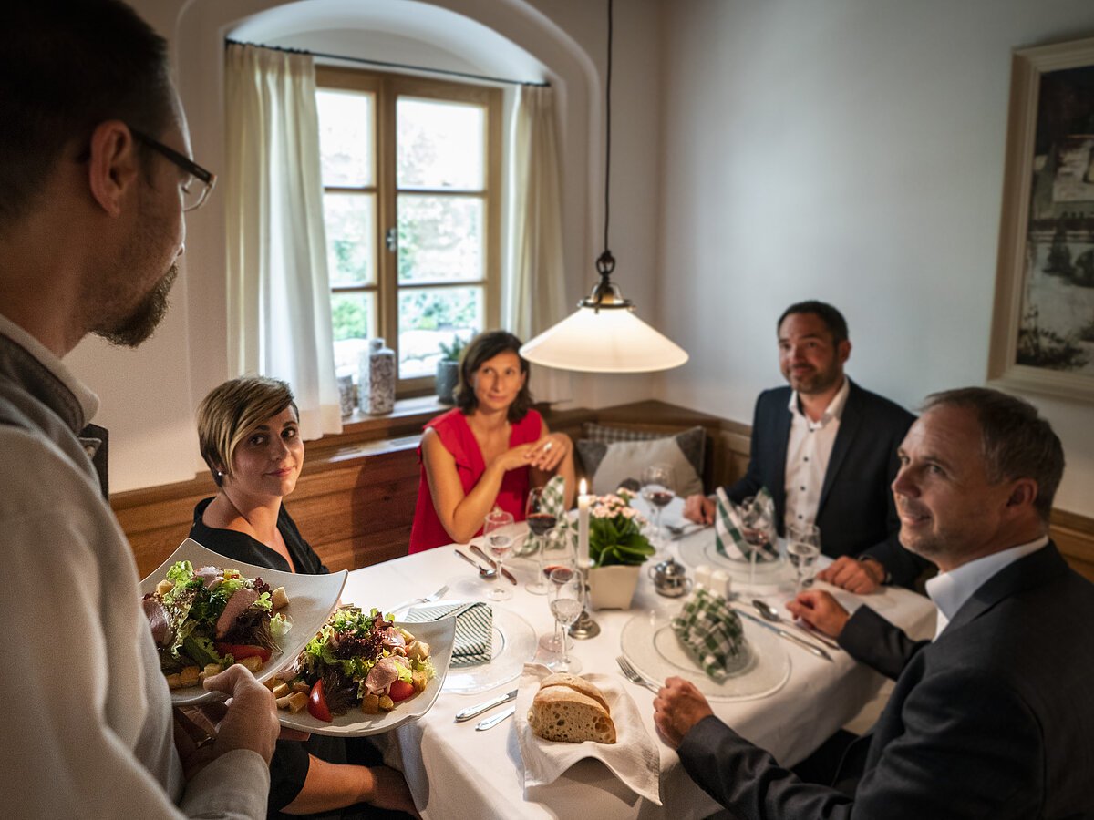 Regionales Genießer-Frühstücksbuffet, bayerische Küche mit hausgemachter Wurstvielfalt aus der eigenen Metzgerei, Lammspezialitäten, gemütliche Biergärten, Bar & Lounge, Bräustüberl, voll ausgestattete und klimatisierte Tagungsräume, Räumlichkeiten für Anlässe aller Art.