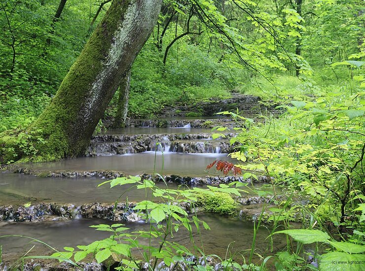 Urdonau und Sulz etwa trennten vor zwei Millionen Jahren den Arzberg vom Hirschberg ab und schufen so eines der 100 schönsten Geotope Bayerns. Im Kleinen wirkt das Element ebenso beeindruckend, zum Beispiel bei den Kalktuffterrassen der Marienklause. Am Ufer des Ludwig-Donau-Main-Kanals, den der bayerische König Ludwig I. bis 1846 bauen ließ, um die Donau mit dem Rhein zu verbinden, stehen Birken, Fichten und vor allem prachtvolle Feldahorne.