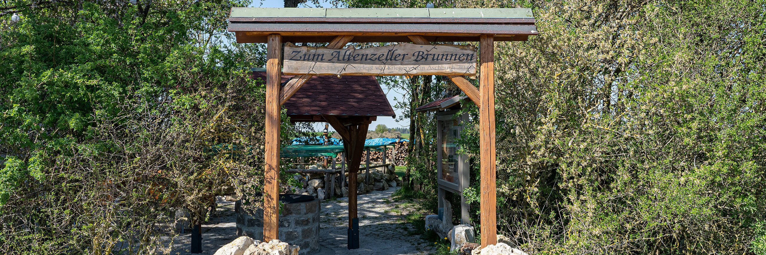 Aus dem Platz wurde eine Gedenkstätte, welche liebevoll hergerichtet wurde. Mit Schmiedeeisenen Kreuzen aus der Aschbucher Kirche lädt das Kleinod nun zur Rast ein, bietet aber auch Vögeln ein zu Hause.