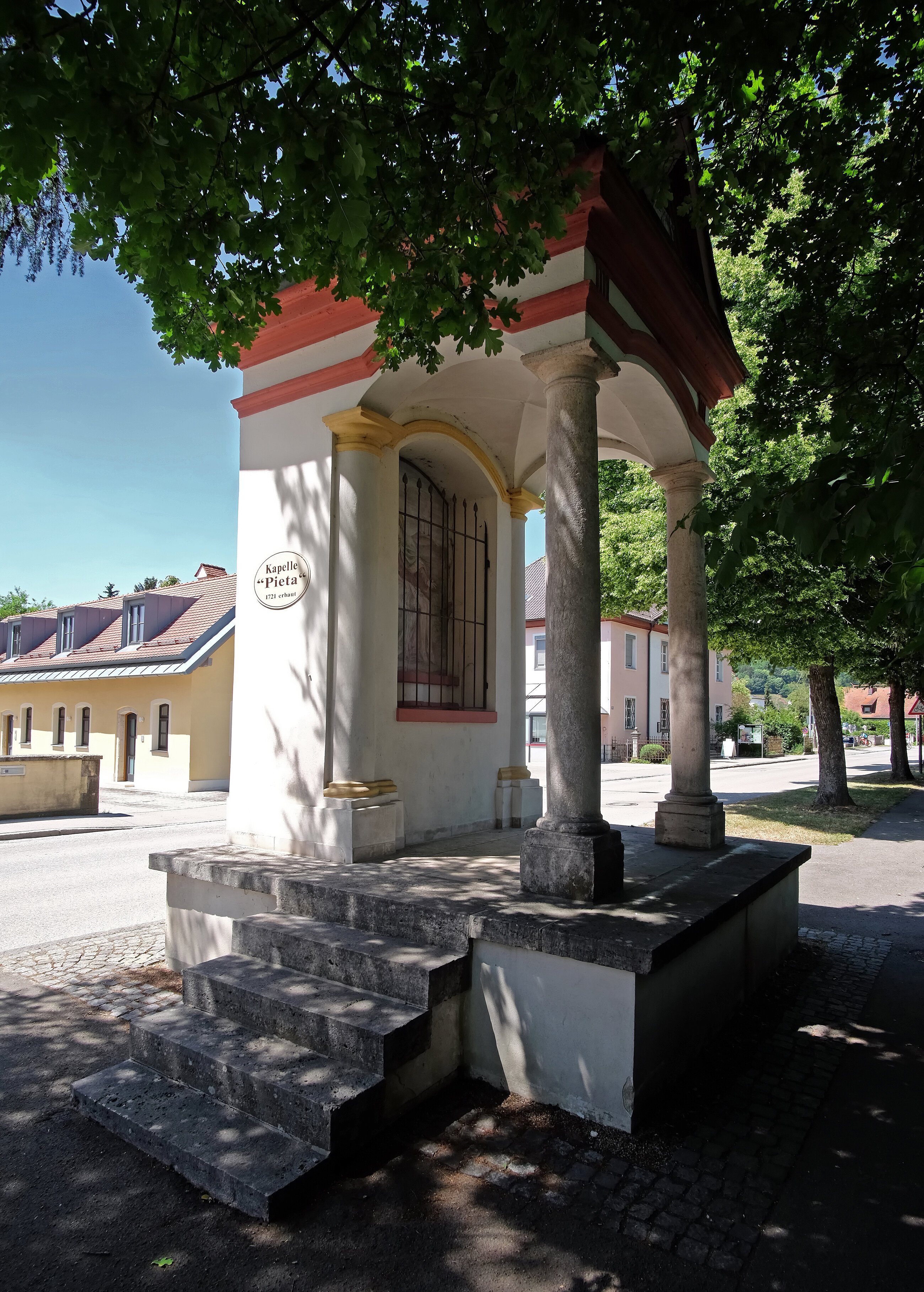 Sie standen jeweils im Osten und Westen außerhalb des Wassergrabens an der Stadtmauer. Die Pietà ist ebenfalls ein Baldachinbau. Sie wurde 1721 von Johann Paul Schattenhofer gestiftet und 1730 geweiht (siehe Schattenhofer-Wappen).