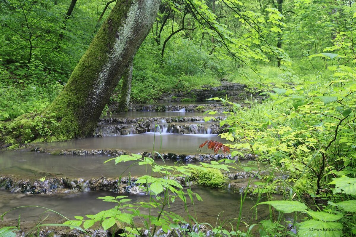 Innerhalb weniger Wochen werden ins Wasser gelangte Gegenstände wie abgefallene Blätter, kleine Äste, aber auch Moospolster mit einer spröden Kalkhaut überzogen. Selbst die Baumstämme, die einen Teil der Quellbecken einfassen, tragen unten Kalkkrusten. Solche Bäche mit ihrem zwar extrem harten, aber sehr kalten und relativ sauberen Wasser beherbergen an tieferen Stellen eine eigene Lebensgemeinschaft. Neben schwarzen Strudelwürmchen sind die beim Schwimmen seitlich liegenden Bachflohkrebse die auffälligsten Tiere. Hauptsächlich von ihnen ernähren sich die Larven des Feuersalamanders, des seltensten Lurches unserer Gegend, den man im Birkental antreffen kann.