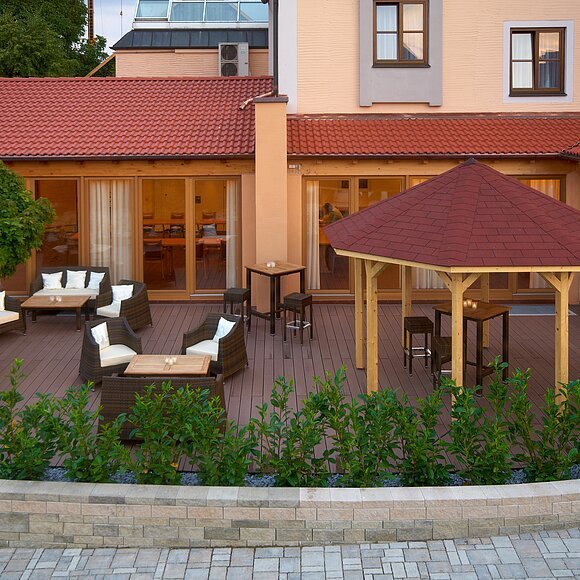 Gutbürgerliche Küche und ausreichende Räumlichkeiten für Tagungen, Familienfeiern und Busreisegruppen, sowie ausreichend Parkplätze (ca. 100) direkt am Haus sind vorzufinden. Ein schattiger Biergarten läd zu Entspannung zwischendurch ein.
