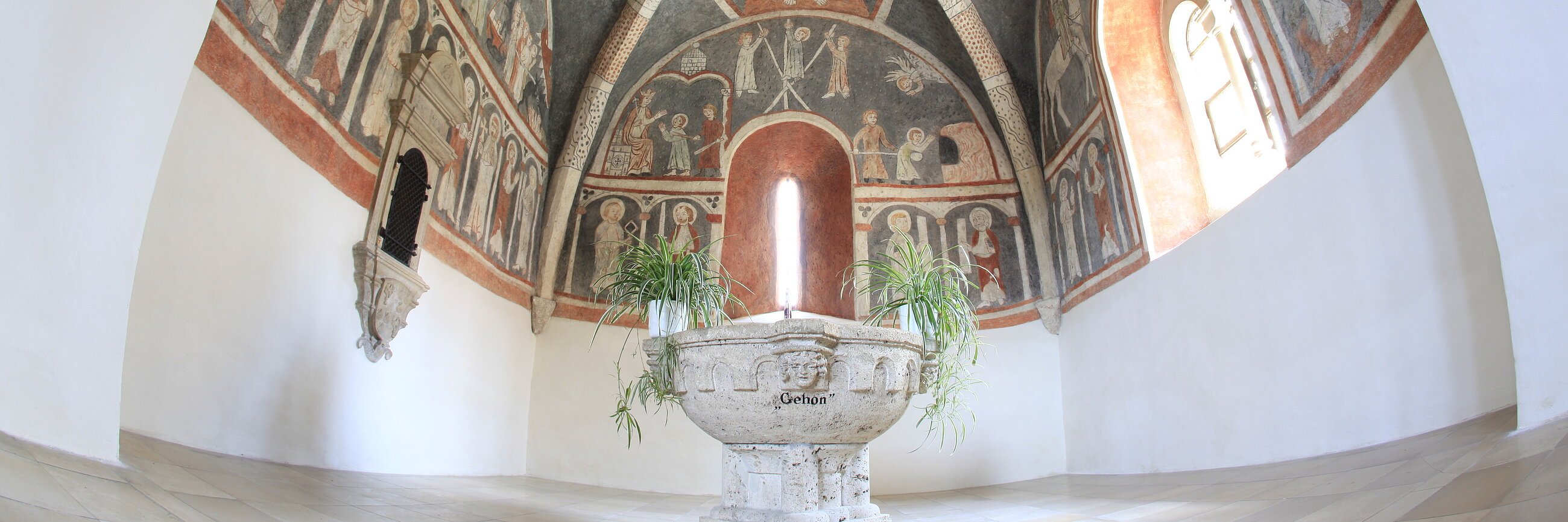 Aus dem 13. Jahrhundert stammen die ältesten Teile des Gotteshauses (Untergeschoss des Westturms). Um 1310 wurde der Chor der Kirche, jetzt Vituskapelle mit Fresken ausgestattet, die noch sehr gut erhalten sind und eine Sehenswürdigkeit von hohem kunst- und kulturhistorischem Wert darstellen.