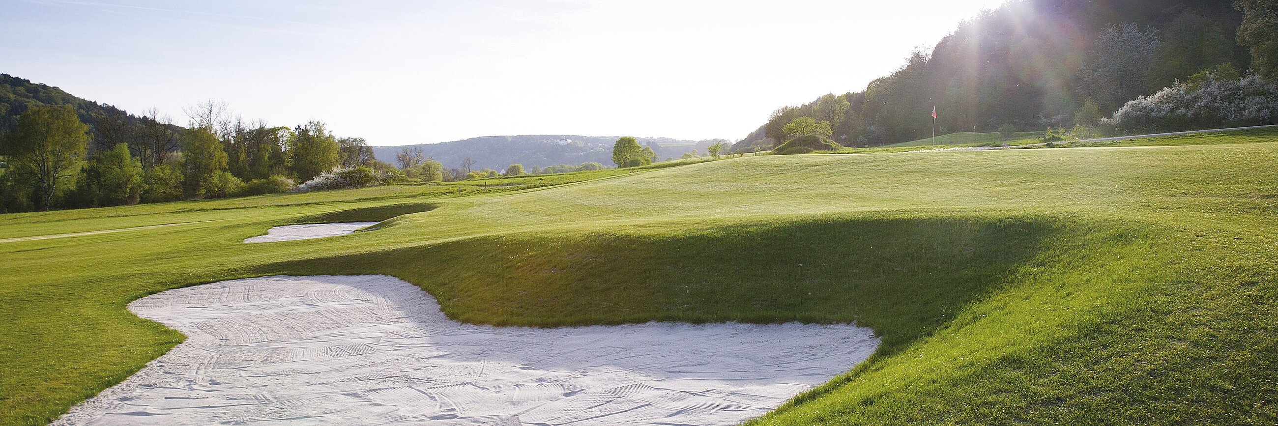 Naturbelassene Fairways, abwechslungsreiche, leicht hügelige Spielbahnen sind für Golfer in jeder Spielstärke interessant. Sportlich anspruchsvolles Spiel oder rundum entspannendes Golferlebnis – auf dieser Anlage stehen Ihnen alle Möglichkeiten offen. Unser Signature Hole, die Bahn 9, Par 4, ist mir ihrem erhöhten Abschlag und nicht einsehbarem Inselgrün, eine besondere Herausforderung für jeden Golfer.
