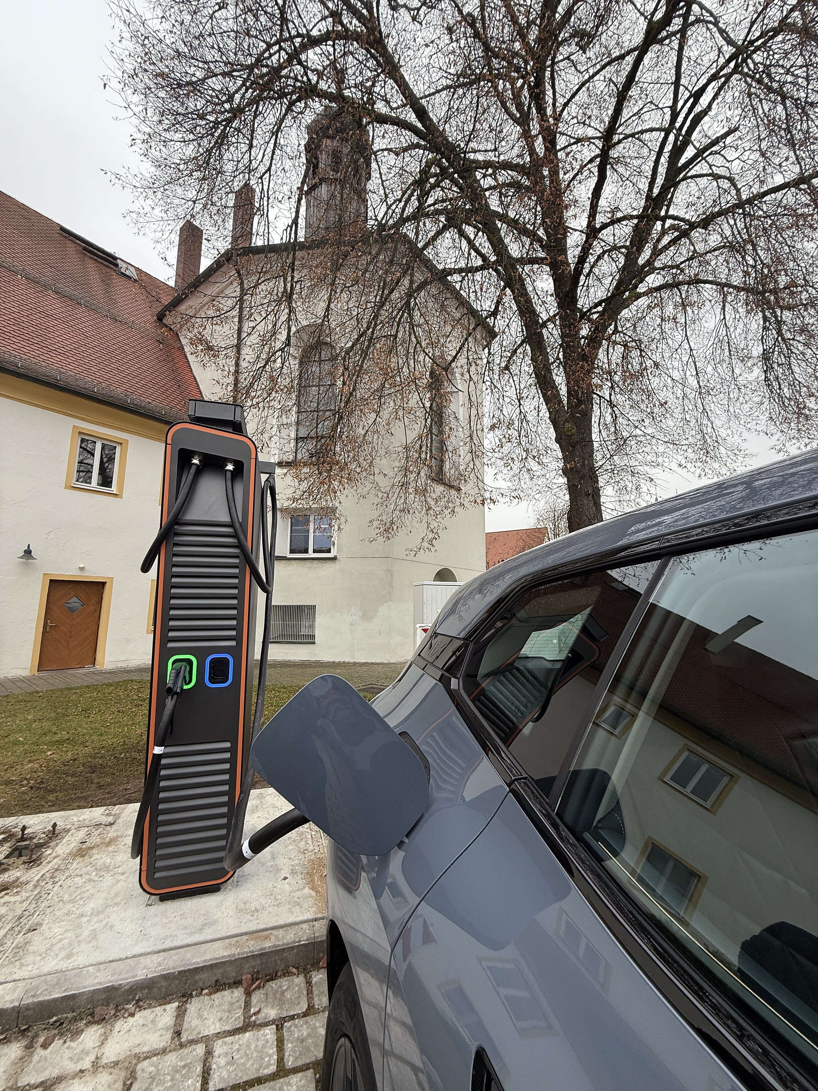 Geladen werden kann an AC-Säulen und an "Schnellladepunkten" mit 150 kW.