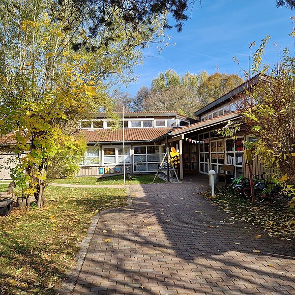 Unser Schutzengelkindergarten liegt in einem ruhigen, zentrumsnahen Wohngebiet, neben der Einrichtung für Betreutes Wohnen. In unmittelbarer Nähe befinden sich Wald, große Wiesenflächen, ein Bolzplatz sowie das Hafengelände mit einem Spielschiff.