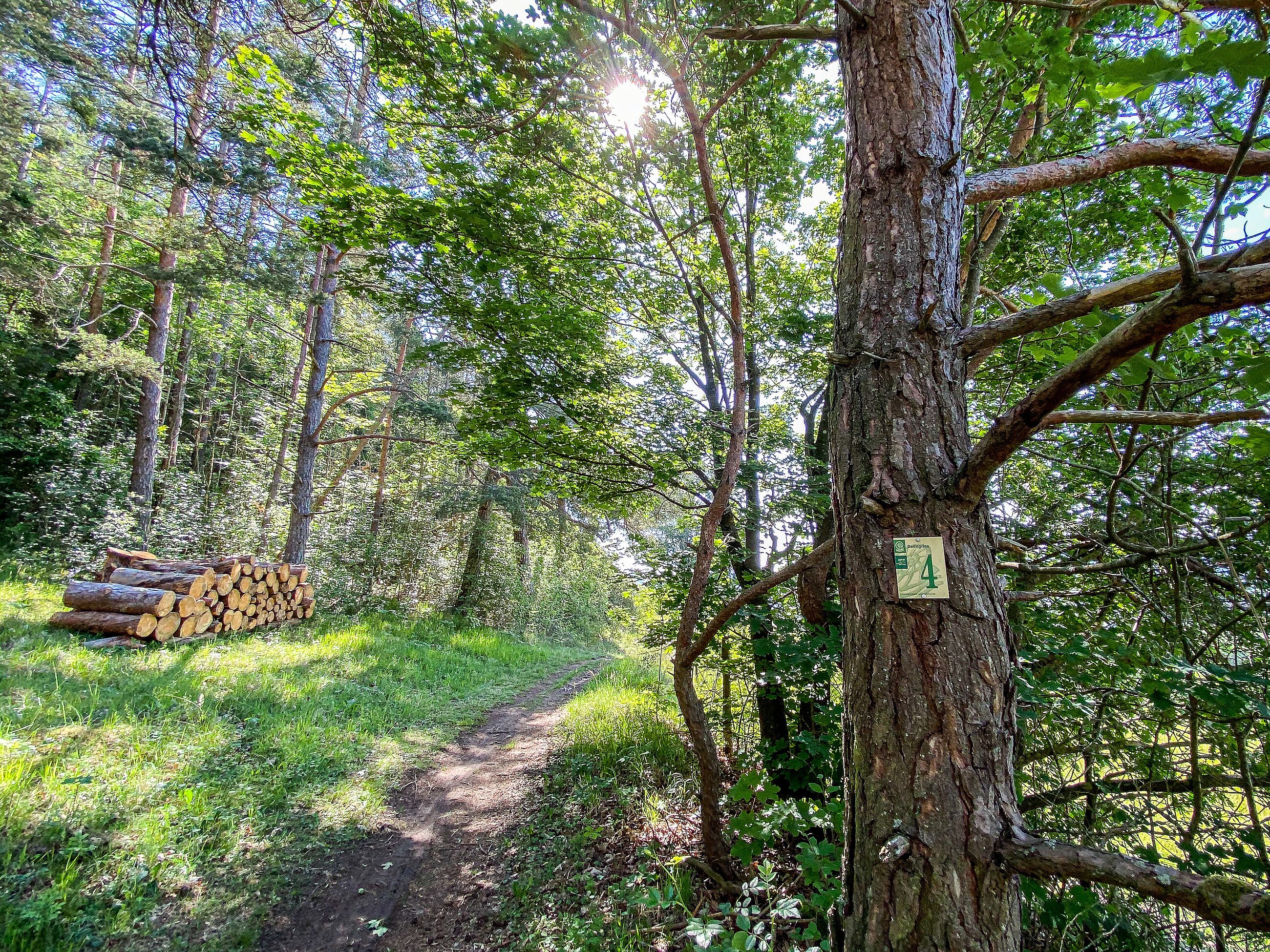 Schöner Naturweg entlang des Arzbergs mit typischen Hangterrassen und Trockenrasen.